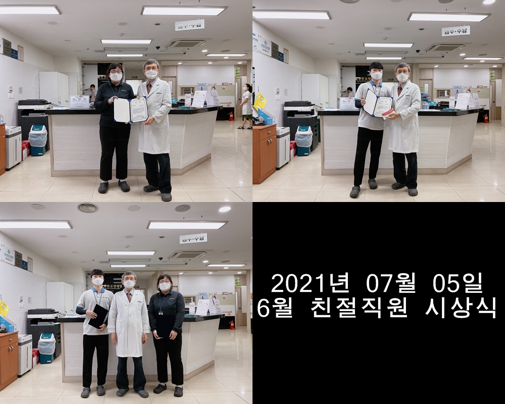 | [안내] 2021년 6월 친절직원 시상식 조회수 : 2,058회 | |||